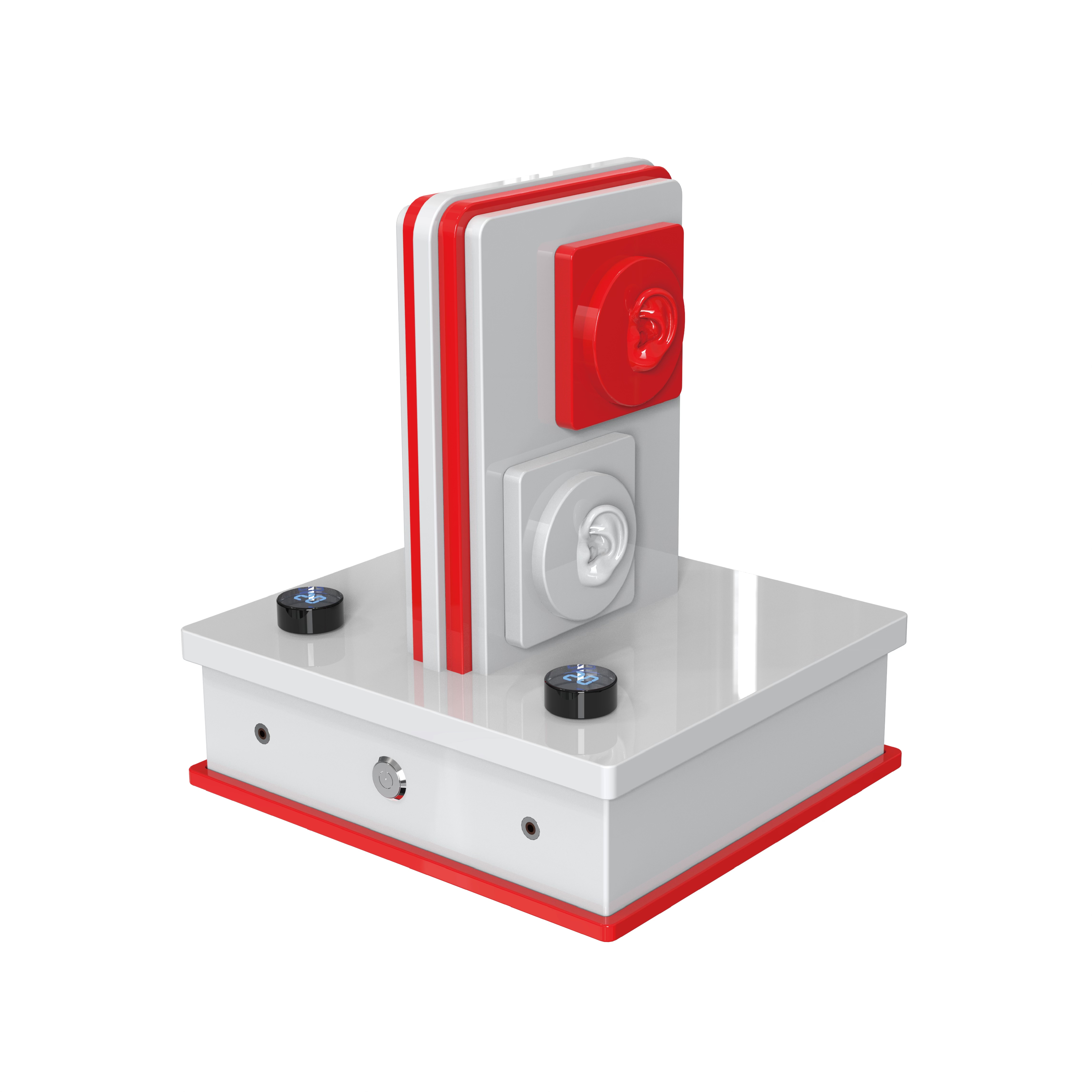 高保真助听器效果演示仪创新使用人头设计,模拟真人佩戴助听器的真实情况,提供更为真实的助听器效果体验,助力专业人士展示助听器的实际效果;