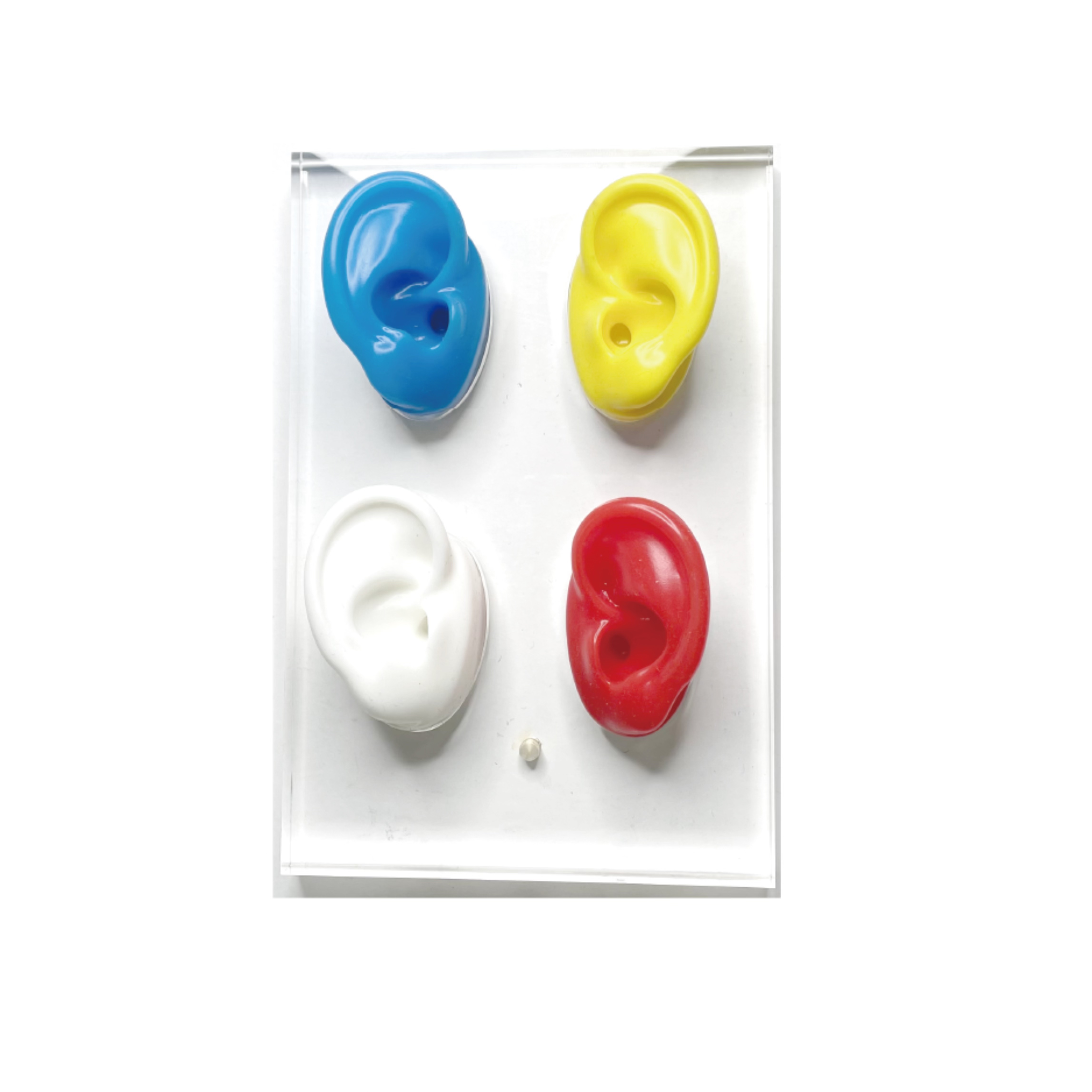 由仿真耳朵及亚克力组成。亚克力板晶莹剔透,仿真耳朵柔软细腻,整体精致典雅,展